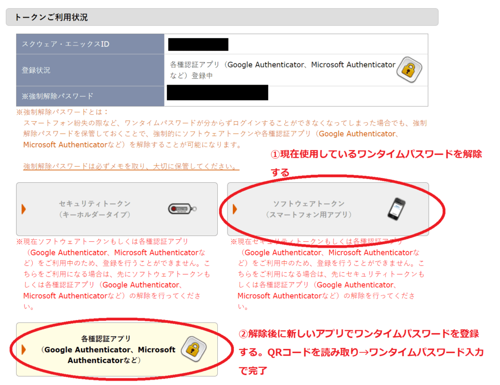 - スクウェアエニックスのアカウントにログインして、ワンタイムパスワードを解除