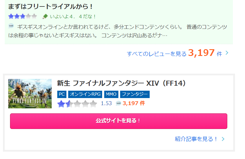 グーグルで「FF14 レビュー」で検索するといくつかのサイトが出てきます。
